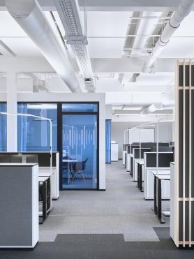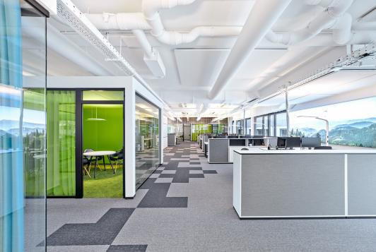 Ein weiterer Bauabschnitt in der Hauptverwaltung in Nagold wurde umgesetzt, wo Schritt für Schritt die Geschosse neu organisiert und saniert werden. Sämtliche notwendigen Funktionsbereiche wurden in der Fläche abgebildet und so organisiert, dass optimale räumliche Zusammenhänge zwischen den Abteilungen entstehen. Der Grundriss ist ein Abbild des Organigramms und der Kernprozesse des Unternehmens und der Zusammenarbeit der Abteilungen.