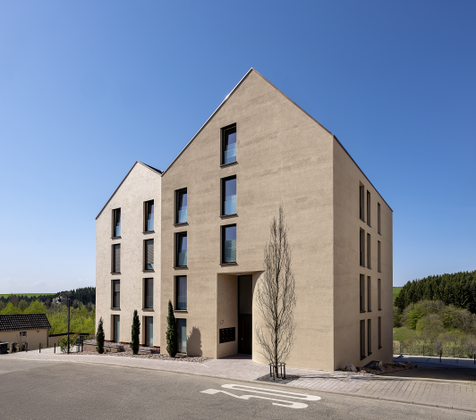 Natur und historischer Stadtkern gehen in Dornstetten direkt ineinander über. Beide Vorzüge bringt das Gebäude, das an der Hangkante am Rande des historischen Stadtkerns von Dornstetten steht. Die unverbaubare Aussicht nach Südwesten ermöglicht eine klare Ausrichtung und Zonierung der Wohnungen: Die Bewohner blicken in die freie Natur. Das Wohnhaus wurde harmonisch in die Umgebung integriert.