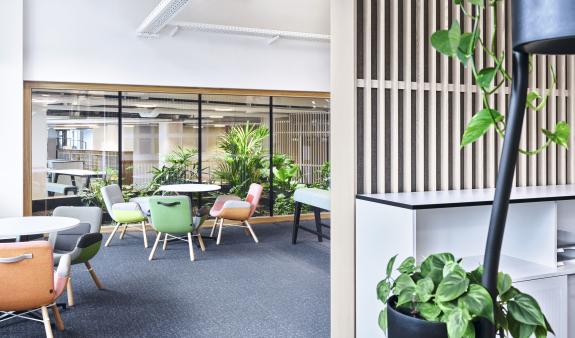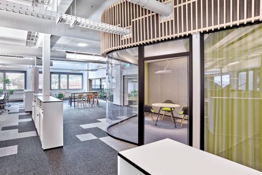 Die Firma Häfele ist Spezialistin für Möbel- und Baubeschläge, Schließsysteme und Beleuchtung. Als international erfolgreiches Familienunternehmen mit 8.000 Mitarbeiter:innen ist es agil und anpassungsfähig. Um dies bis in die Bürostruktur hinein sichtbar zu machen, wurden hier Räume geschaffen, die Kollaboration unterstützen und fördern.