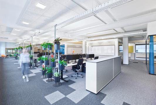 Ein weiterer Bauabschnitt in der Hauptverwaltung in Nagold wurde umgesetzt, wo Schritt für Schritt die Geschosse neu organisiert und saniert werden. Sämtliche notwendigen Funktionsbereiche wurden in der Fläche abgebildet und so organisiert, dass optimale räumliche Zusammenhänge zwischen den Abteilungen entstehen. Der Grundriss ist ein Abbild des Organigramms und der Kernprozesse des Unternehmens und der Zusammenarbeit der Abteilungen.